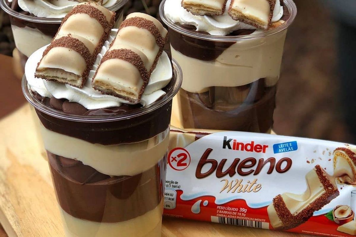 Copo recheado com chocolate, creme de ninho, chantilly e kinder bueno